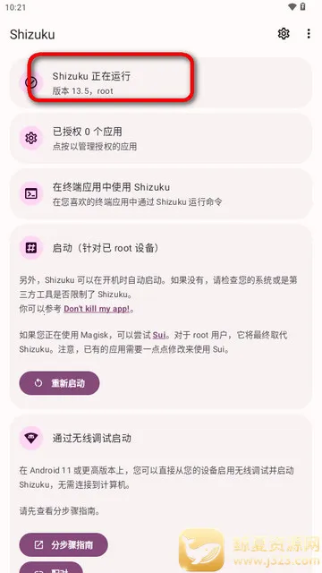 4、下载并安装Shizuku软件后,启动该服务;