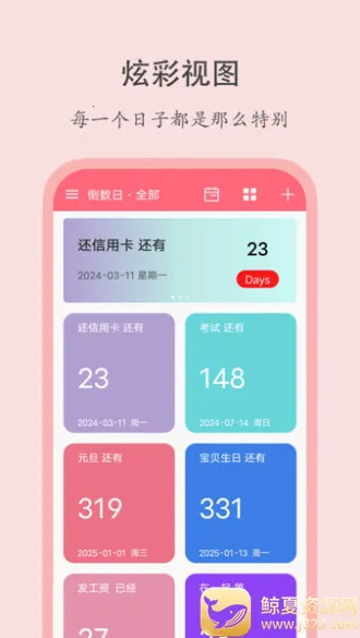 这款软件在日期管理方面表现出色。操作简单易上手,能快速记录各类重要日子,通过不同颜色标记方便区分。支持公历与农历,还有丰富可爱的图标和背景可免费使用或导入自定义。倒计时自由添加,提醒功能实用,可有效防止错过重要时刻。如恋爱纪念日、家人生日等,其可视化展示增强临近感。软件亮点众多,能满足多样化需求,助力养成良好时间管理习惯,告别拖延症,是一款值得拥有的日期记录提醒工具。