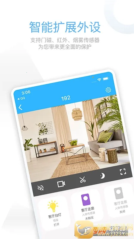 2. 安全保障全方位:具备移动侦测报警功能,支持门磁、红外、烟雾传感器等扩展外设,时刻保护安全。