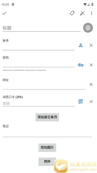 4. 为密码添加标题方便查询,用户可轻松记住各种账号密码,在手机上就能随时操作管理各类账号密码,还支持添加详细备注信息。