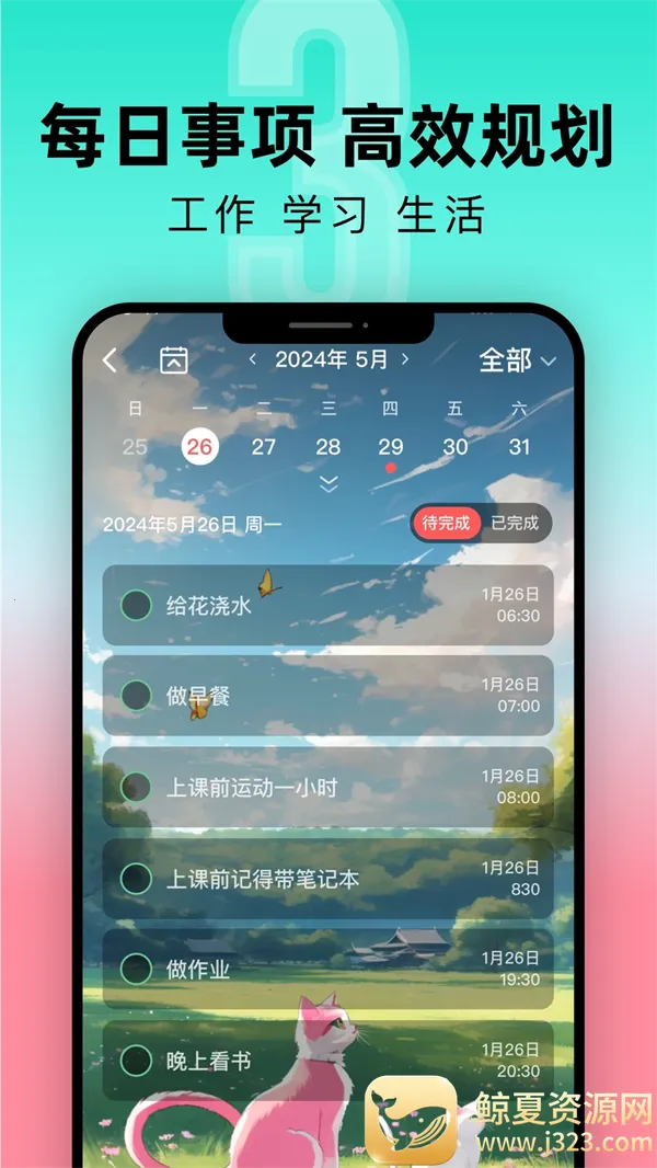 说到自定义背景图片,如果遇到弄不了的情况,别着急。在首页下方点击“我的”,找到“更换背景”点击进入,然后点击倒计时背景、待办事背景、记事本背景下的加号,就能从手机相册或相机选择想添加的背景啦。要是还是不行,看看是不是软件版本问题,及时更新到最新版v9.1.7,这个版本上线了动态背景视频和自定义背景功能。它能让你的提醒更清楚,还能定制个性化背景,真的很好用,赶紧下载试试吧。