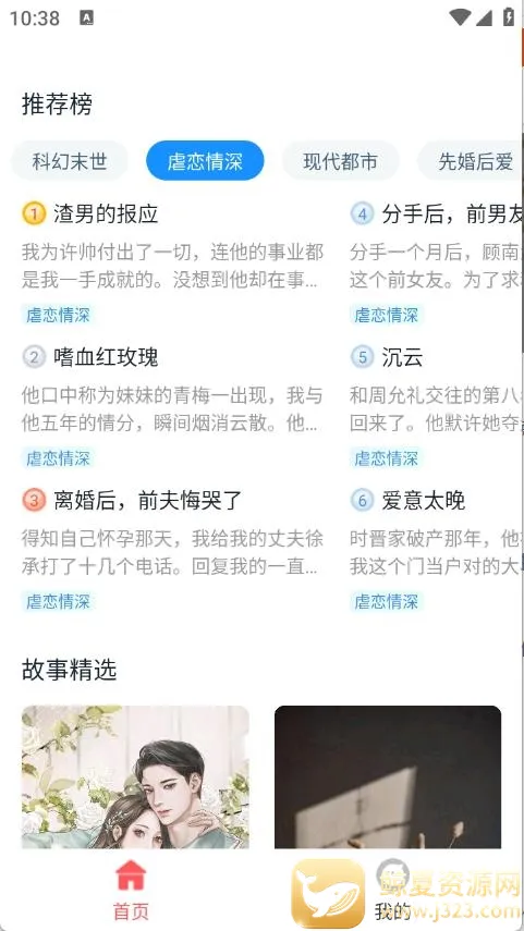 2、首页顶部栏中有很多的小说类型,包含了科幻末世、悬疑以及都市等类型。
