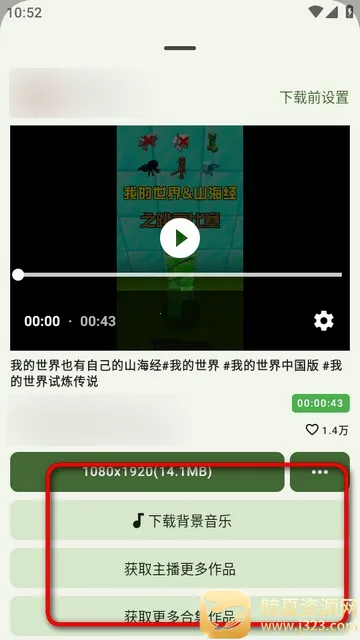 3、点解析后可以看到视频的相关参数,点获取主播更多作品。