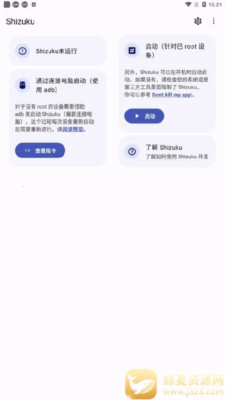 1、首先进入Shizuku最新版2023,这里显示没有运行;