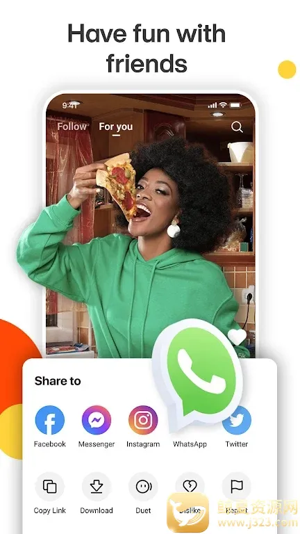 1、海量多元内容:汇聚影视、综艺、音乐、潮流、运动、搞笑等多类型短视频,每次打开都有新鲜内容,让用户刷不停。