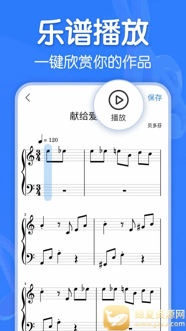 3、播放完善:支持播放,能让你更快速欣赏自己的作品,还可纠正错误使乐谱更完善。