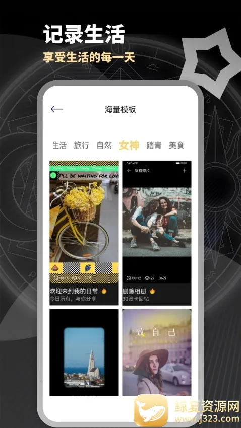 3. 多样模板:拥有丰富多样的模板资源,像生活、旅行、自然和美食等各类模板应有尽有,可任由用户自由使用。
