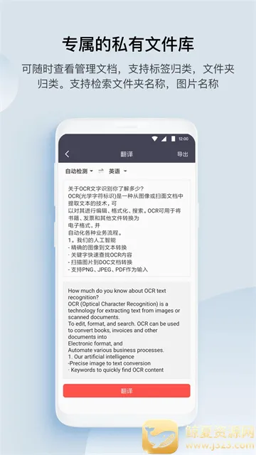 2. 采用智能OCR文字识别技术,支持汉语、英语、法语等56种不同国家语言识别,能精确识别图像文字,且可任意编辑复制。