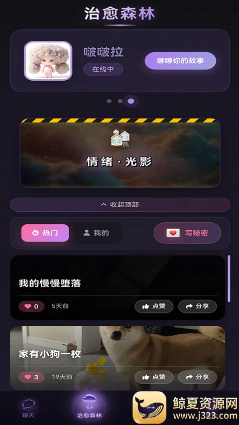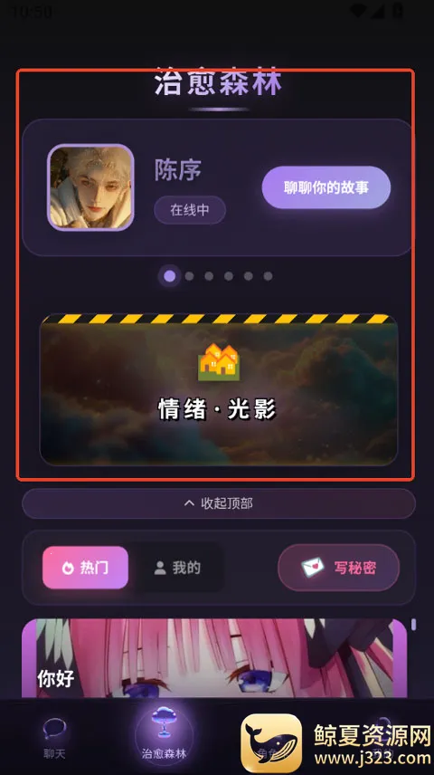 3、也进入【治愈森林】筛选你喜欢的角色;