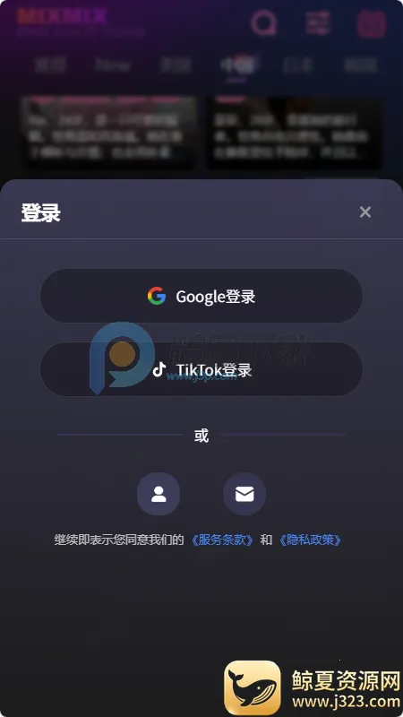 4、在这里选择登录方式,支持谷歌,tiktok,邮箱等;