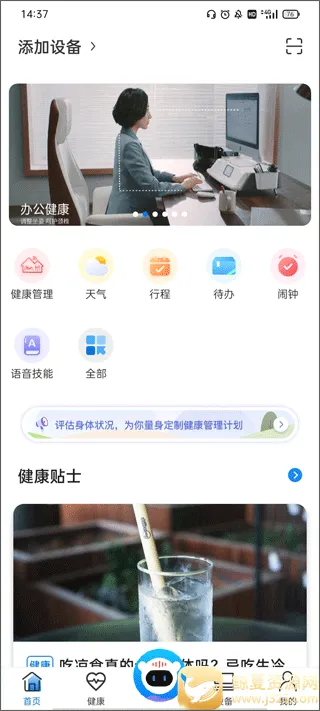 i 乐歌 2026 版是智能办公助手,支持蓝牙连接设备,提供语音查询、日程管理及健康数据监测。它能定制健康计划,记录久坐与运动数据,整合多设备控制,助您高效工作并呵护身心健康。