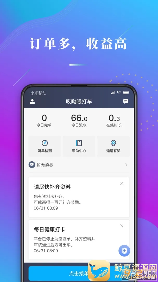如果你是一名司机,正在考虑是否要加入哎呦喂司机平台,那你可来对地方了!这款软件专为司机打造,能帮你轻松接单,增加收益。它会为你提供最合适的订单和信息,让你不再为找单发愁。而且客户发布的出行订单会自动同步到司机端,你能即时接单,第一时间获取乘客位置,接送乘客更方便。软件特色满满,有一体化高效管理,后台服务稳定;全方位安全保障,守护司乘安全;还有百万级运力支持,订单充足。注册要求也不复杂,人车两证资料齐全,驾驶证无酒驾记录,驾龄三年以上就行。加入后,七日内就能提现。在这里,你能享受智能的订单信息获取,还能参与众多活动。如果你想成为一名更高效、更赚钱的司机,哎呦喂司机绝对值得一试!