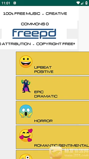 4. 内容翻译成中文,支持简体中文,对不同网站音乐精细分类,方便查找,音乐还能在线直接播放,国外无版权音乐也可下载。