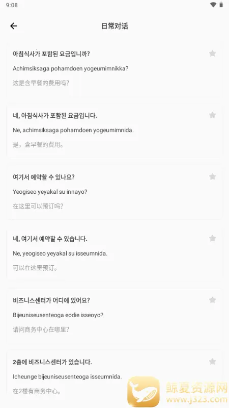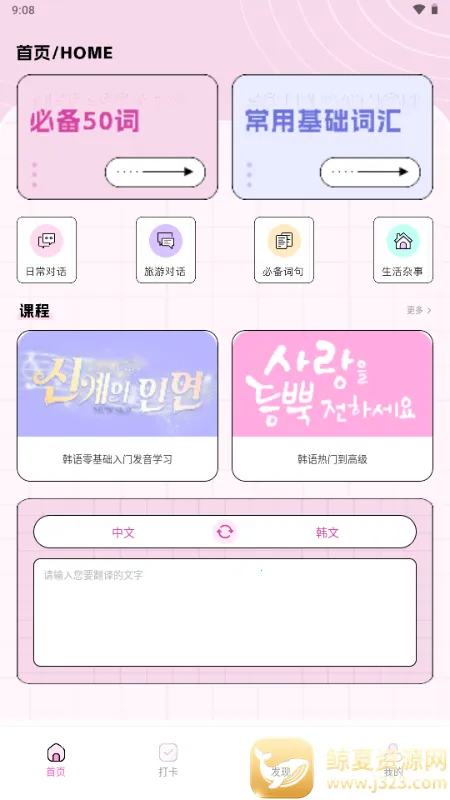 2. 助力语言学习:内置实用韩语交流内容,有常用语句与标准发音教学,海量学习课程,帮用户轻松掌握基础沟通技巧,拉近与偶像距离。