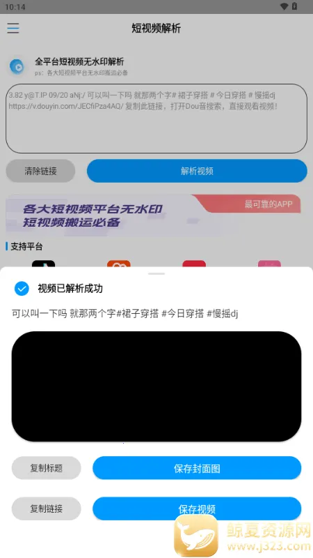 3. 适配平台丰富:目前已支持主流短视频平台,能够满足多数用户的日常去水印需求,后续还将持续扩展更多适配平台。