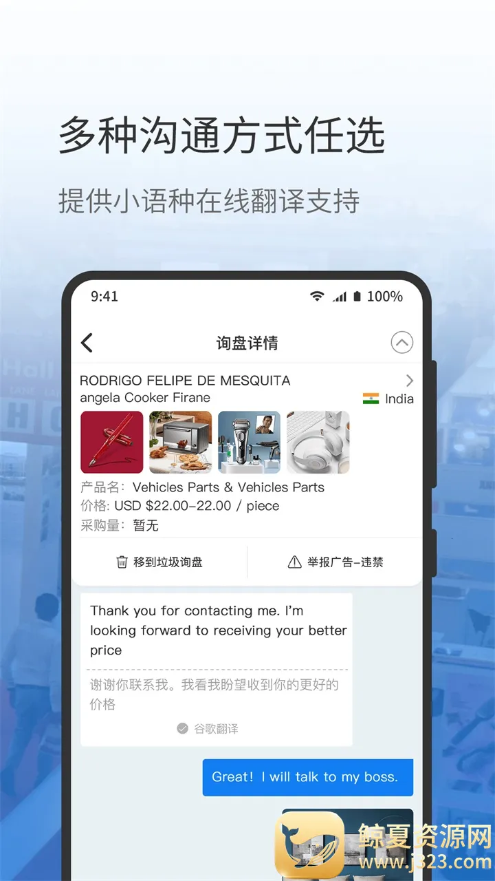 2、丰富商品资源:拥有超级庞大的商品资源,方便大家在线选购合适商品,有力促进外贸交易。