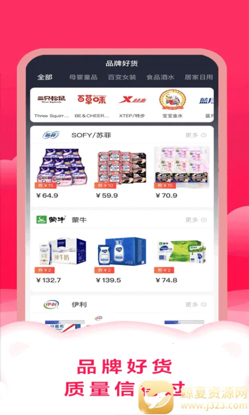 2、品牌好物全:网罗全网大品牌优质商品,经过严格质检,质量有保障,还有丰厚福利。