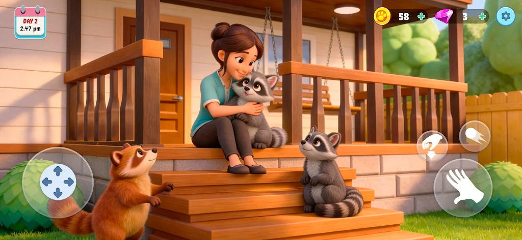 拥有丰富的互动体验,玩家可自由选择照顾浣熊的方式,如喂零食、梳理毛发、观察情绪等,通过这些细微互动建立深厚信任,带来心灵上的平静与满足。