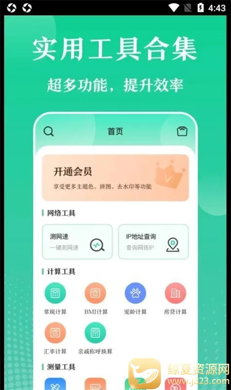 如果你在寻找多彩实用工具,那这几款软件值得拥有。它们是集多种功能于一体的手机工具箱软件。有各种计算工具,像常规计算器、房贷计算器、BMI 计算器等,能满足日常计算、宠物年龄计算、买房房贷计算等多样需求。测量工具包括测距仪、指南针等,可一键测量身高、建筑物高度等,出行和日常测量超方便。视频图片工具能一键无痕去水印,还有趣味拼图功能。办公学习工具提供单位换算、PPT 模板、简历模板等,帮助高效完成工作。此外,还有九型人格、MBTI 性格测试、星座以及测网速等娱乐小工具。操作简单,界面简洁,大部分功能免费。无论是日常生活规划旅行、家庭理财,还是工作学习中的单位转换、制作 PPT,它们都能轻松搞定,让生活更便捷,工作学习更高效,强烈推荐下载体验!