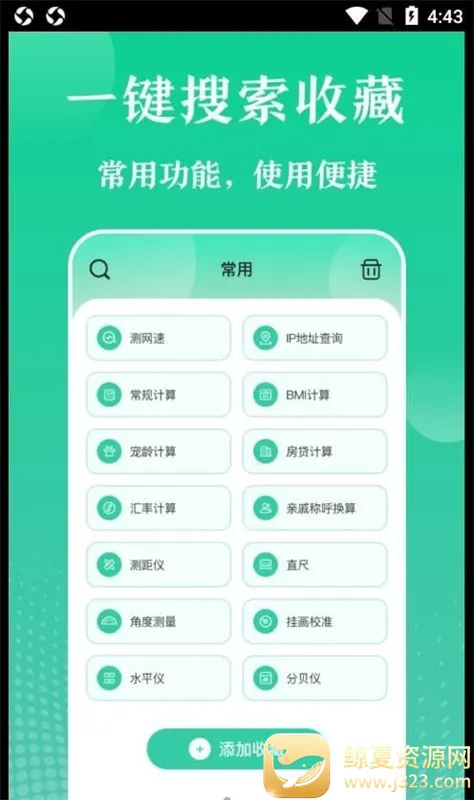 2、操作简单便捷:一键搜索添加应用,轻松找到所需工具。操作轻松智能,在生活各种场合都能方便使用,无论是计算、测量还是处理图片等,都能快速上手。