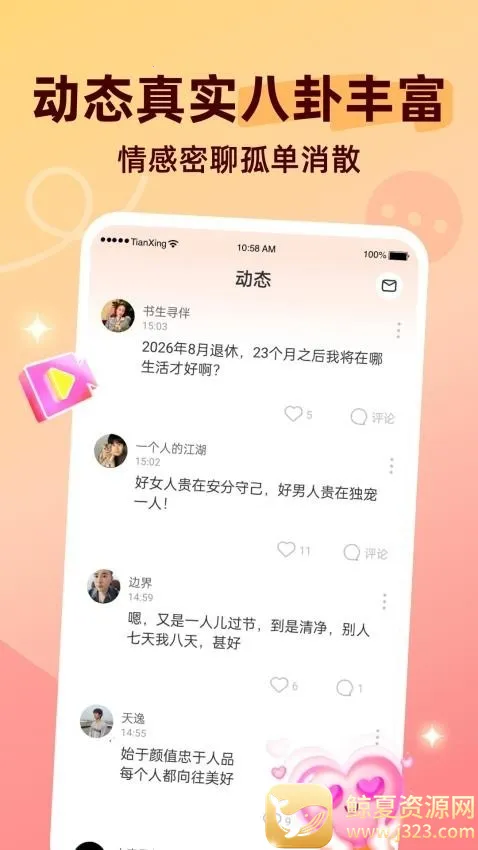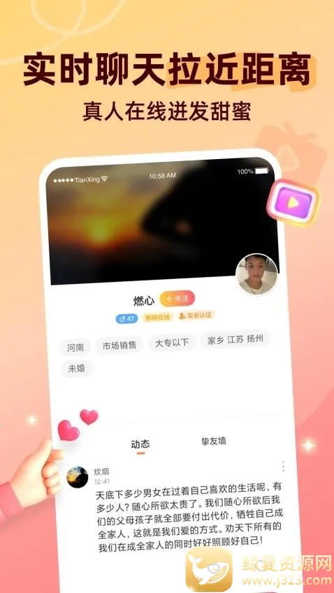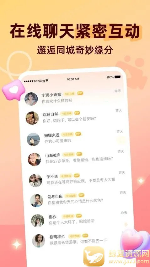 2. 告别单身:在线交友助力用户邂逅心动之人,告别单身。