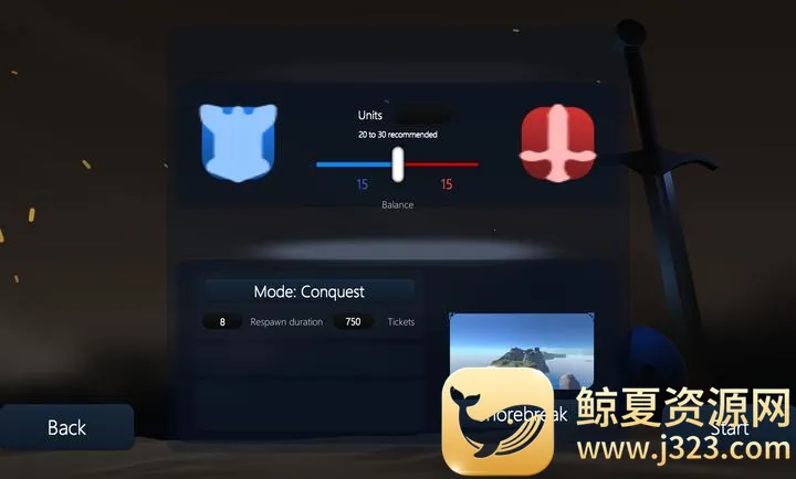 中世纪战地模拟器高仿版是一款有趣的战场模拟游戏,玩家能选小镇、雪林等多种模式,有易难两种难度,可设定机器人数量和出生时间。游戏目标是占领要塞击败对手赢胜利,支持多角色,赢旗帜和对手可获超100积分。