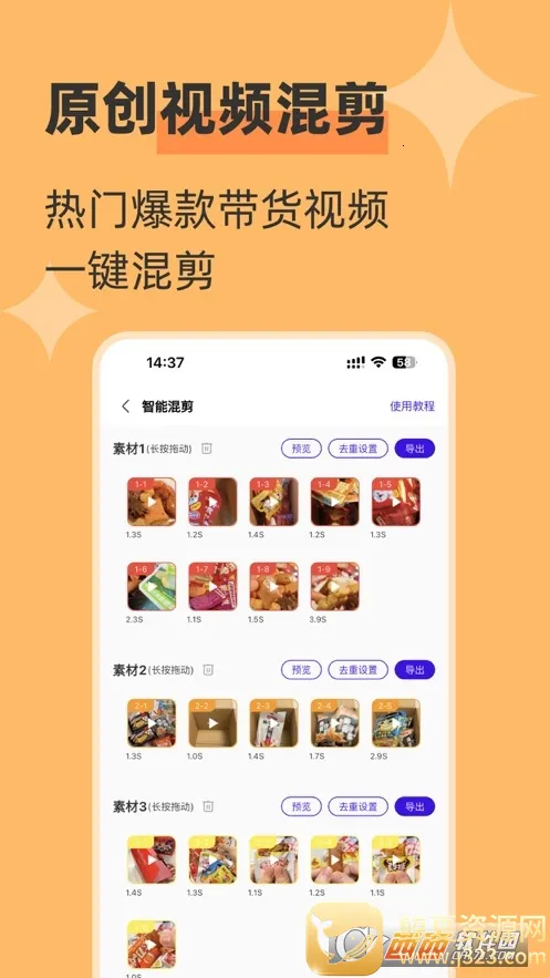 2. 持续更新的素材:拥有上千个原创热门零食、百货好物图文素材和视频素材,并且每日更新,为创作提供源源不断的新鲜内容。