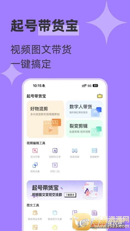 起号带货宝2026官方正版是一款带货助手,有好物混剪、二剪、去重等丰富功能。能提供起号及视频图文带货功能,含商品拼图、AI抠图等,还有专业教程,适用于多种带货场景,一键搞定带货。