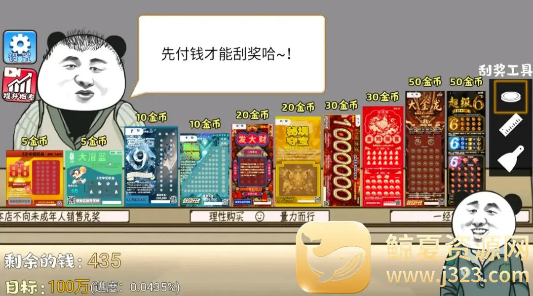 2、多样卡片趣无穷:内置多款特色鲜明的中式刮刮卡,像传统红包刮刮乐、吉祥符号卡、生肖主题卡等。每种卡片有独特中奖规则和奖金设置,玩家可自由选择,满足不同需求,不会产生视觉疲劳。