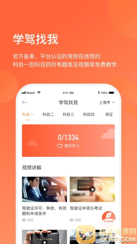 2. 学驾特色:能帮找优质适配正规驾校,科二科三有免费模拟考,还有科目一至科目四在线模拟考训练及免费视频教学。