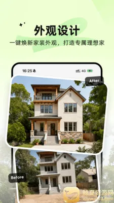 全屋场景一站式解决,涵盖室内设计客厅卧室厨房到外观设计和花园设计,一个APP搞定全屋设计。