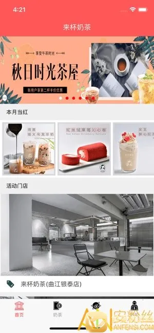 4. 能切换到自己所在城市,查看实时奶茶活动,选择喜欢的口味线上下单。