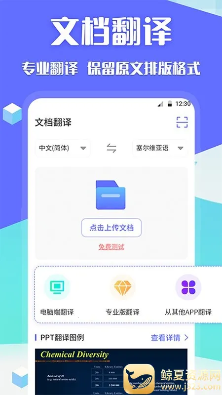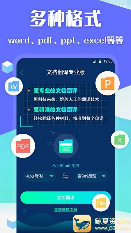 1. 支持多格式文档上传,PDF、PPT、Excel、Word等一键完成整篇翻译,无需手动分段,翻译后保留原文格式,避免排版错乱,节省后期调整时间。