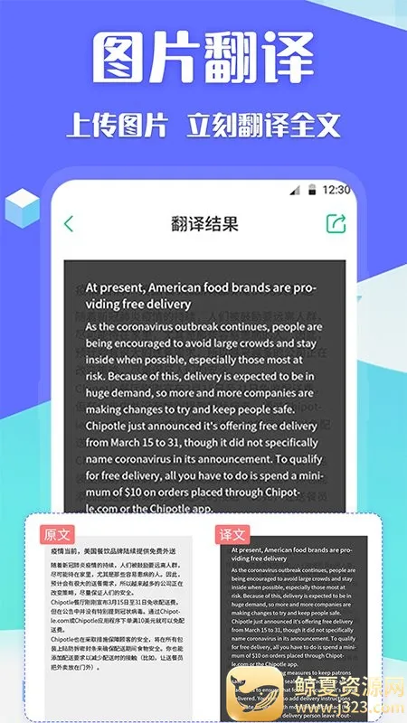 3. 智能翻译模式便捷:通过AI图像识别技术,可上传图片或拍照,快速提取文字并翻译,适用于外文文献、海报、说明书等场景,操作简单又高效。