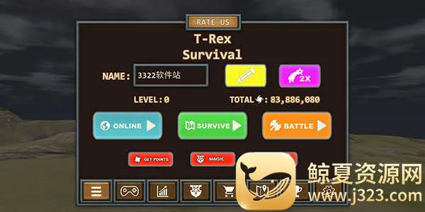 如果你喜欢恐龙,又想体验刺激的生存冒险,那霸王龙生存模拟器安卓版绝对值得一试!在这个游戏里,你将化身霸王龙,在开放世界中尽情探索。你要寻找猎物、击败敌人,确立自己的霸主地位。这里有逼真的画面和音效,能让你仿佛置身于侏罗纪时期。游戏特色满满,比如你能控制霸王龙在开放世界探索,每个关卡都有特定目标,收集资源提升它的能力,还能与其他强大恐龙战斗争夺地盘。游戏攻略也很简单,进入先设定昵称,点击BATTLE按钮选关,进入关卡看任务目标,点击地图可查看位置,遭遇敌人点击爪印图标就能攻击。亮点更是不少,高度还原侏罗纪生态,有多样恐龙种类,开放世界可自由探索,还有丰富任务系统。它能满足你对恐龙世界的好奇,带来沉浸式的冒险体验,让你过足霸王龙的瘾!