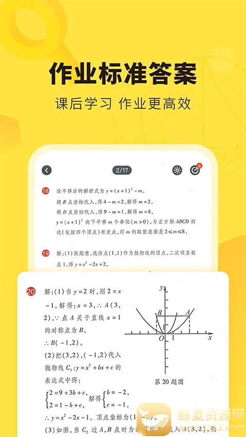 快对作业能帮你轻松解决作业难题!它覆盖小学一年级到高中三年级全学科习题。你可以用拍照搜题功能,一拍题目,系统迅速识别返回解析,省去找答案的麻烦。也能按年级学科或书名搜索课程内容,获取整本书配套解析,轻松掌握知识点。这里还有丰富学习资料,像作文、试卷、笔记等,能提升学习兴趣和效率。