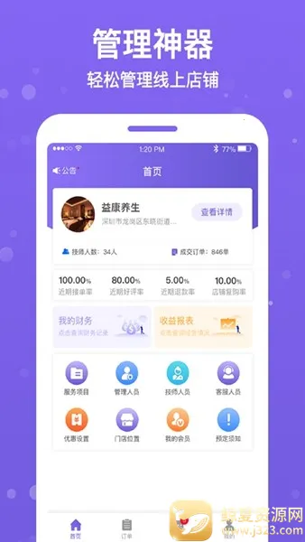 2、便捷店铺管理:无论是服务项目、技师人员,还是会员、订单等,都能在一个平台上轻松管理,让店铺运营更有序。