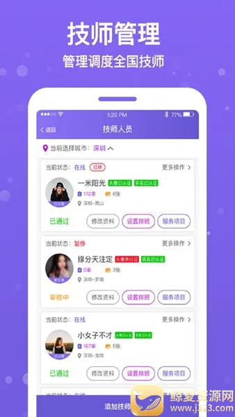 1. 技师灵活调度:可随时对旗下各地技师进行合理安排,满足店铺不同需求。
