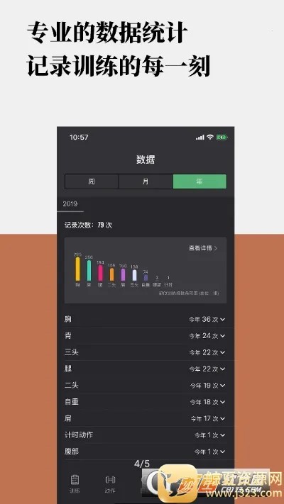 明星教练真人录制健身视频:训记所有健身视频均由明星教练真人录制,带你全程完成训练。教练与你一起流汗,随时指出动作要点发力点,帮助你找到正确发力感受,有效避免训练伤害,优化训练效果。