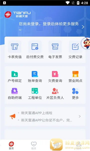 新天富通是新疆天富能源公司打造的综合能源服务APP,是电热气水等线上业务官方入口。支持多支付方式,可查电费余额、停电公告等,功能全,足不出户就能完成用能缴费及情况查询等业务。