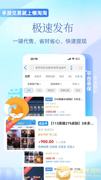 懒淘淘安卓版是专为游戏玩家打造的账号交易平台,涵盖王者荣耀等主流手游。提供智能评估、详细信息,支持担保交易。有丰富交易类型,如卖账号道具、代练等,还有快捷登录等功能,保障交易安全便捷。