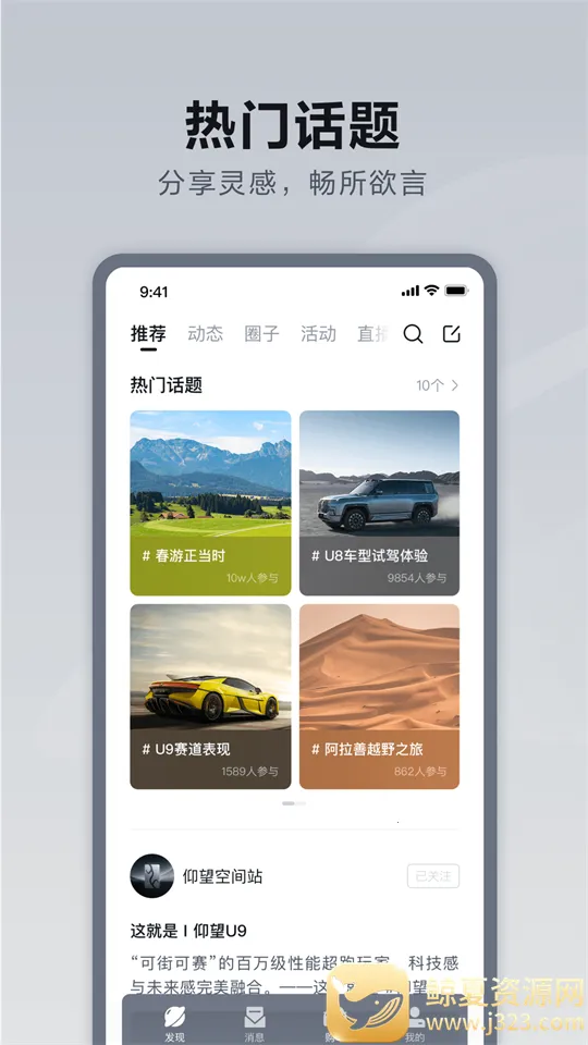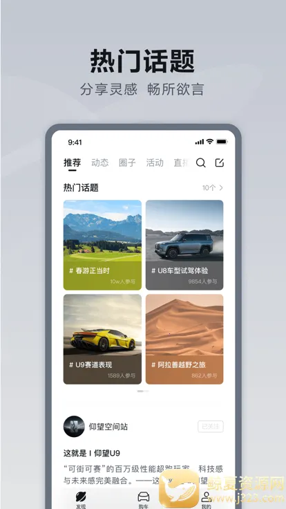 1. 打造专属社区:为仰望用户构建交流社区,在这里用户能交流互动,参与活动话题,收获兴趣相投的好友,分享驾车故事与美好生活。