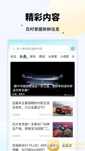 2. 内容丰富全面及时:汇集各大汽车网站新闻资讯,聚合超数百个内容站点,24小时不停更新。有小编原创搞笑有趣视频,带来全新汽车资讯体验。能实时了解热门汽车资讯、新车谍照等,让用户和全球资讯零时差。
