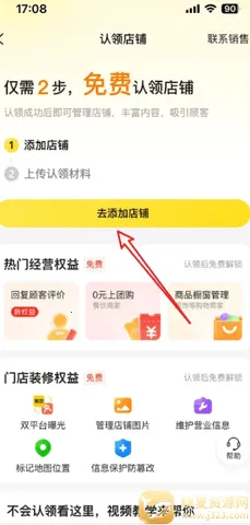 进入到认领店铺界面,点击“去添加店铺”,按照提示进行入驻。