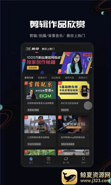4. 学习资源充足:有很多大神的剪辑视频和教程,能让用户学到想学的知识,轻松找到创作灵感,助力提升剪辑能力。