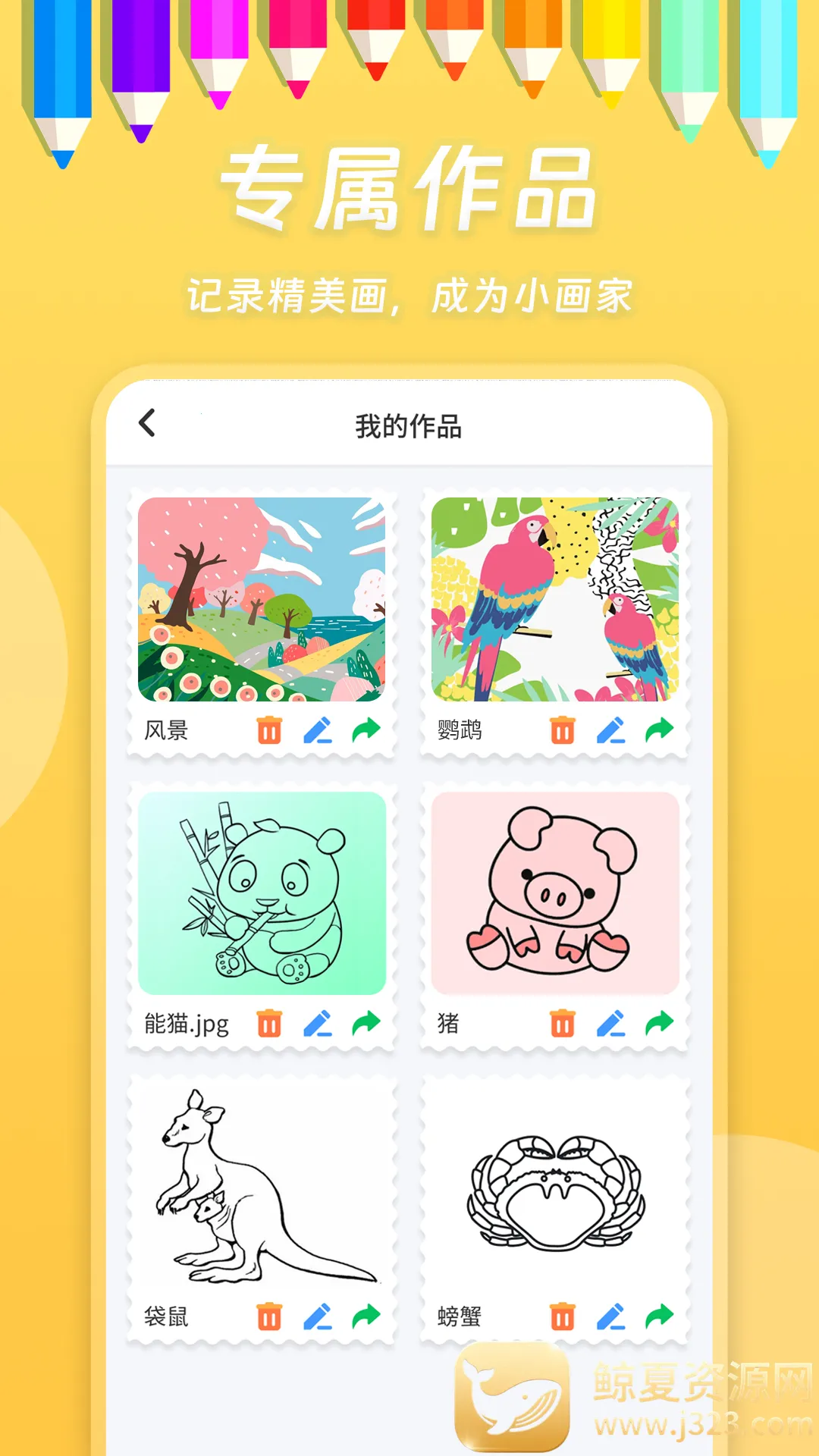 3. 功能丰富多样:不仅有多种绘画工具和素材,满足多样化需求,还支持线上学习、互动分享,可展示自己的作品,记录成长历程。