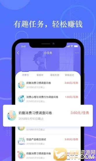 拼任务app是一款超棒的问卷调查软件。它能帮你轻松解决很多问题,带来不少便利。如果你想兼职赚钱,它就是个不错的选择。宝妈、学生等群体,利用碎片时间拍照或回答问卷就能赚取收入。软件功能丰富,能搜索查找任务资源,按喜好输入关键词找想做的任务;提交任务报名审核,从小任务中挑选并申请;查看收入明细,清楚每分钱来源;参与线上市场调研,筛选不同问卷。它还有多种小任务状态,展示待参与、审核中、审核失败及成功等栏目。来自多行业问卷,收入明细清晰,审核状态实时展示,还有丰富社区活动优惠。现在更新到v5.23.0版本啦,优化了用户体验,还增加了新任务类型。快来下载体验吧!