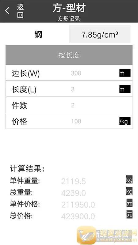 材料重量计算器 2026 官方正版是安阳正则网络科技有限公司研发的 app,能计算多种型材金属重量、价格和长度,支持多种金属,含弧计算,可自定义密度等,操作简单,计算快,还能保存记录,提高工作效率。