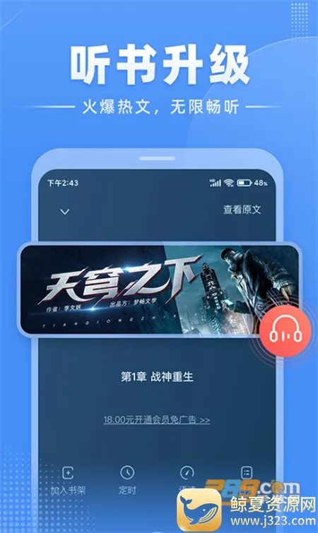 个性化阅读:用户可调整字体大小、背景色、翻页动画等,适配不同阅读场景;支持滑动翻页、点击翻页、自动滚屏,并集成听书功能,提供多种音色选择,解放双眼。