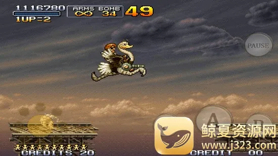 3. 经典画面与多样载具:还原经典的街机风格画面,能让玩家在手机上体验街机游戏乐趣。还有多种有趣载具,如坦克、飞机、马、大象等,可轻松体验游戏乐趣。